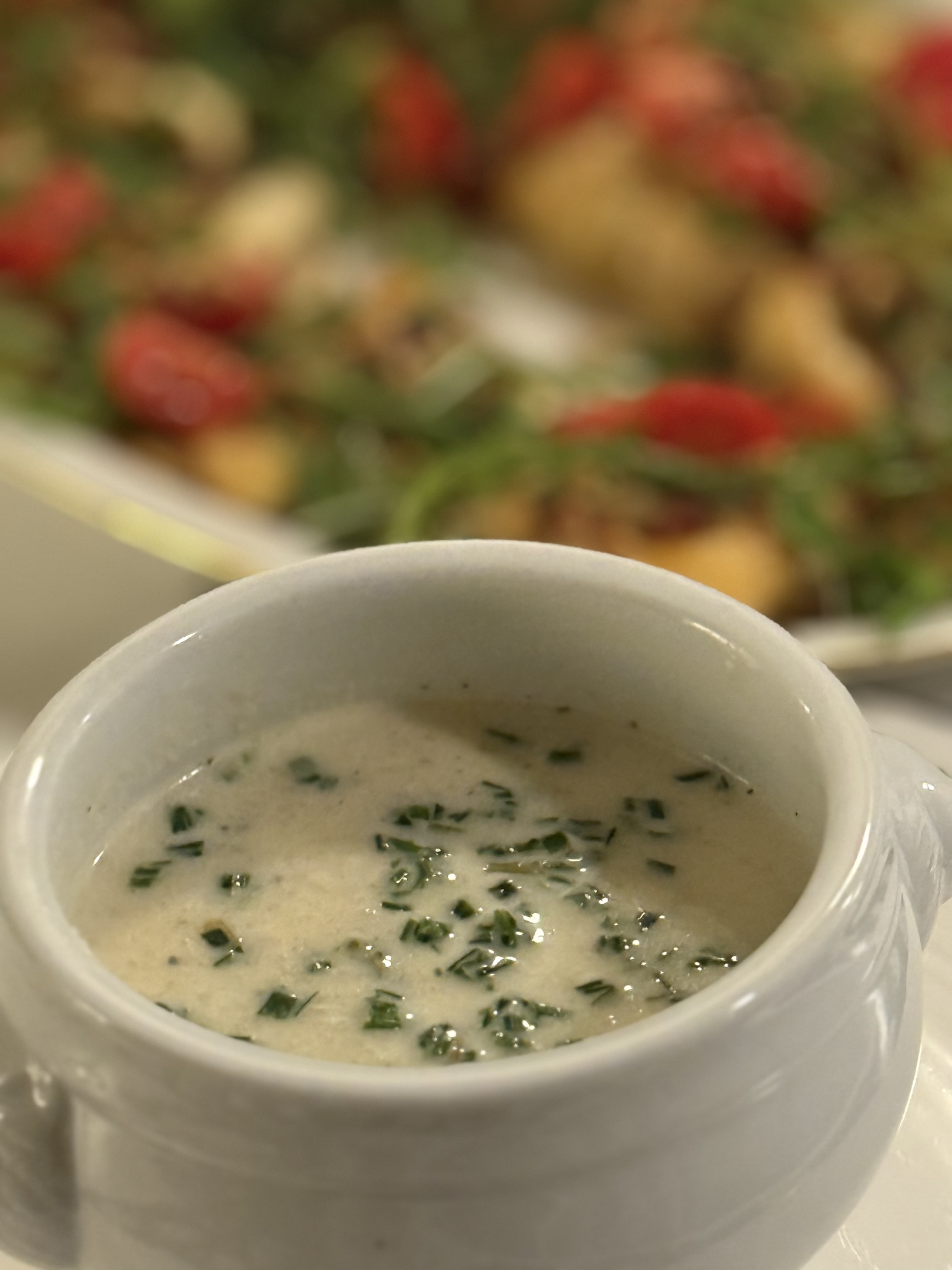 Mixa soppan slät och rör ner den rivna parmesanen. Smaka av med salt, peppar och eventuellt lite sambal oelek om du vill ha en lätt hetta.
