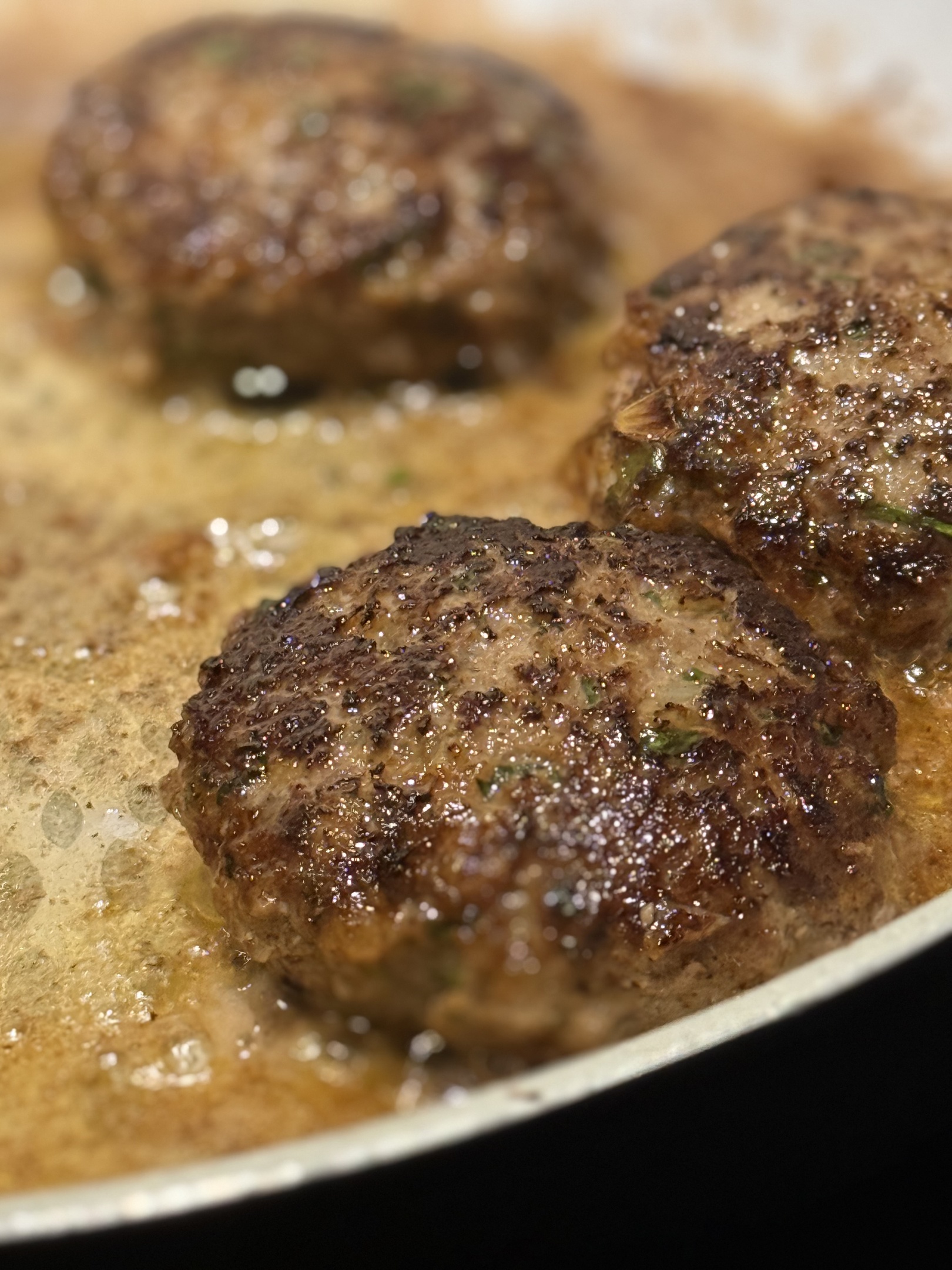 Låt din härliga gratäng vila en stund och servera bara som den är eller tillsammans med en krispig sallad, kyckling eller färsbiffar som jag gjorde till just denna gång. Underbart gott!