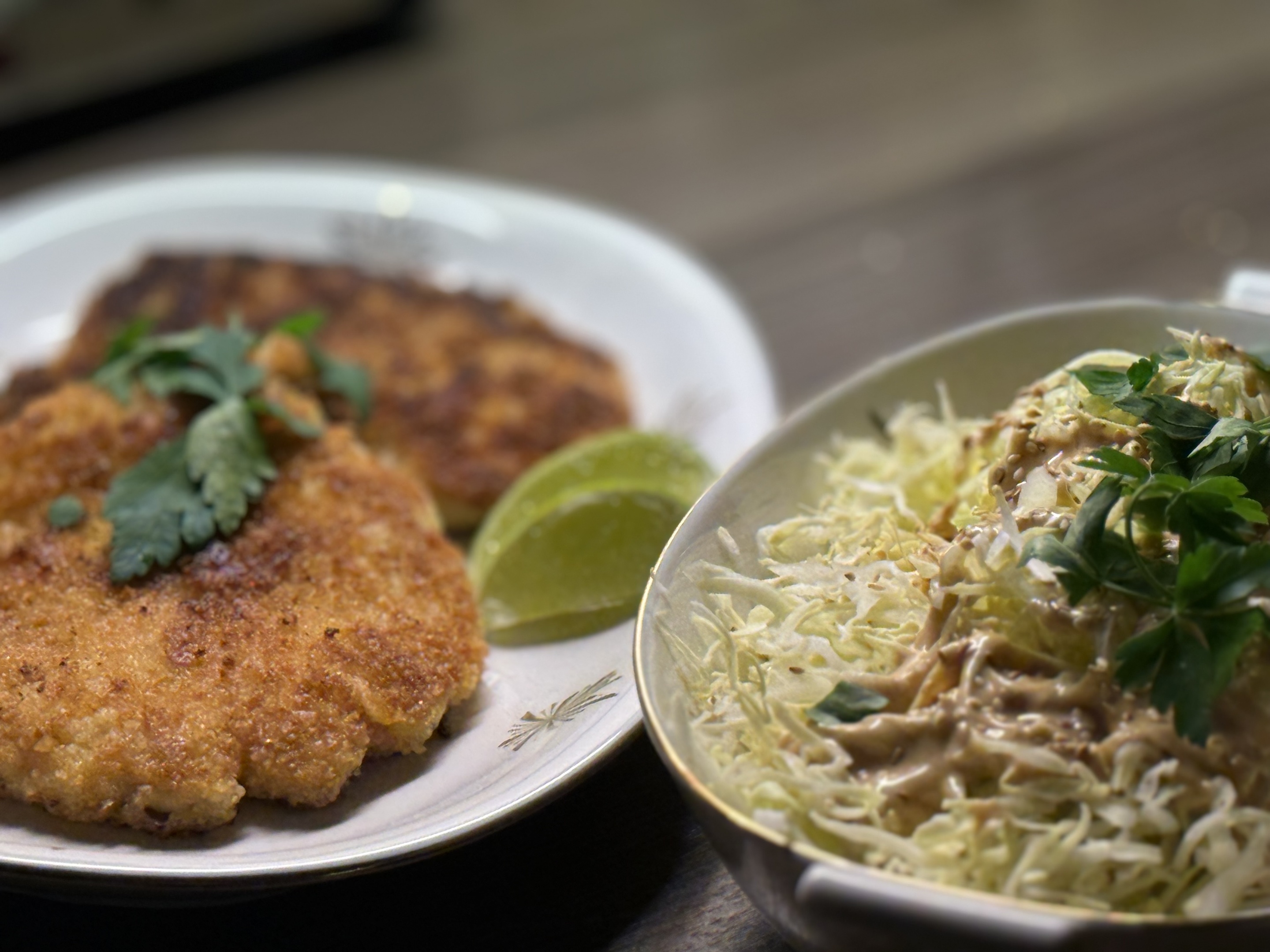 En krispig japanskinspirerad rätt där saftig kyckling paneras i panko och steks gyllene och frasig. Servera med en krämig kålsallad, klassisk japansk tonkatsusås och kanske en frisk tomatsalsa. Bästa kombon av krispigt, krämigt och syrligt helt enkelt. Love it!